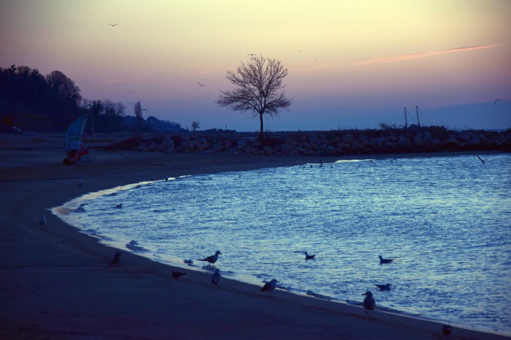 Залезът тихо пристъпи. Слънцето се изсипа върху ленивото море и го превърна в течно злато. Чайка заграчи и в миг се изгуби след заминаващия ферибот. Рибар погледна замислено полупразната кофа с улова от деня. “Нищо”, рече си, “поне напълних и днес душата си с морската шир. Време е да се прибирам у дома.”